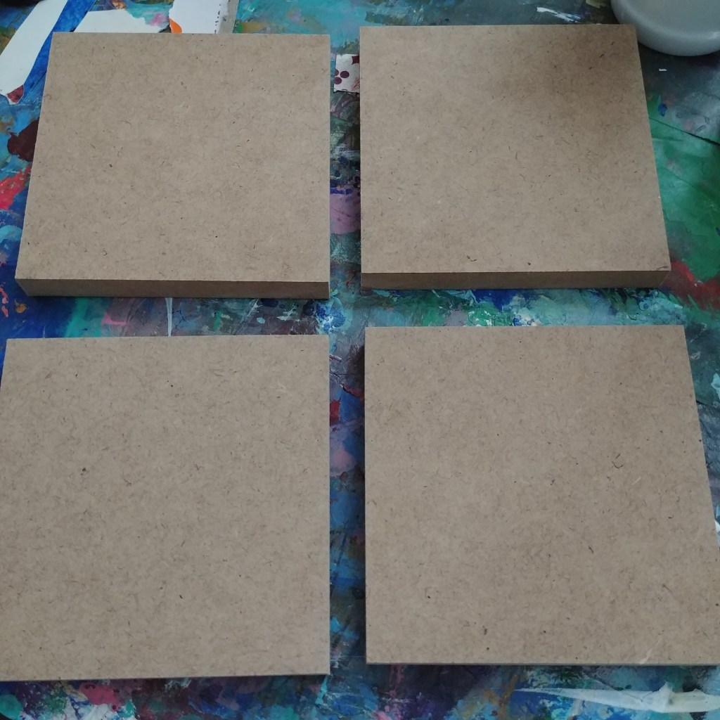 This past Thursday, Georgia had a wicked storm come through and over a million people were out of power. Of course, that was the day I had planned on starting new art pieces. The lighting was poor in my art area so I eventually moved my panels to the kitchen island. I am working with Birch and MDF Boards and I have begun the first layers of three and prepping the others with Gesso. The third piece is not shown in these pictures. Have a blessed weekend! -Stephanie Hopkins