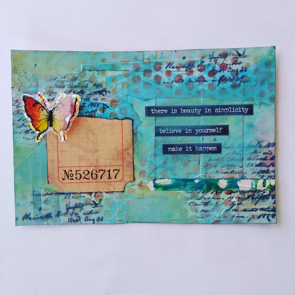 Most of the materials I am using for these cards are my painted collage papers I make on a regular basis. I’m also using magazine clippings and images from old books for collage. As well as Tim Holtz and other artists ephemera you can purchase online or at craft stores. Many of these cards will be used for my 2021 Journals. Others I want to either frame for make another art piece out of them using the collage method.