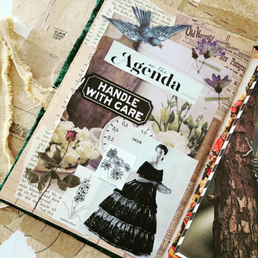 Collage art in my journals has been my favorite method of creating journal pages for a long time. There are times where I create a simple layout to a more elaborate one. It really depends on my mood, time, and what I’m wanting to convey in my spread. There are moments when less is more and you can obtain a lot of inspiration from simplicity.
