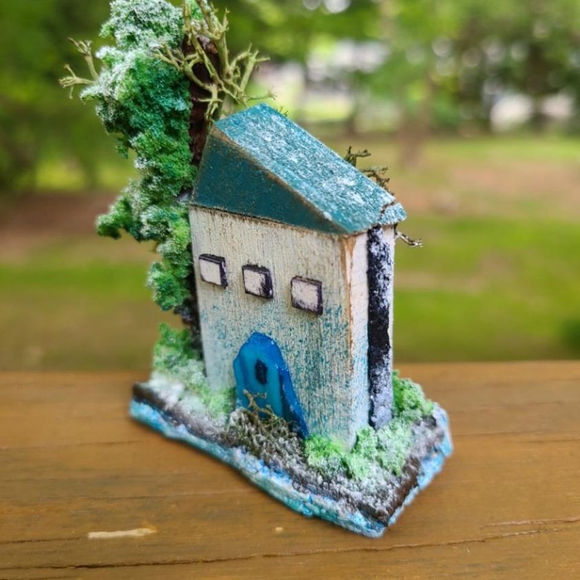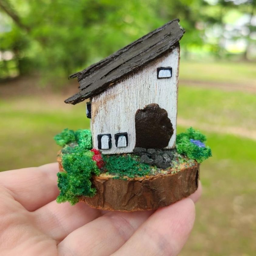 Lately, I’ve been making miniature wood houses, dioramas and dollhouse accessories. I’m having a blast! Back in the mid to late 1990’s I collected miniature tea sets and whatnot. I must confess, I miss those days of collecting miniatures. The combination of that past love and seeing people’s new works of dioramas sparked a fire in me to start creating miniatures. Was it a couple years ago or maybe it was last year, I had worked on a few miniature wood houses but nothing really came of it until now? Yes, indeed.