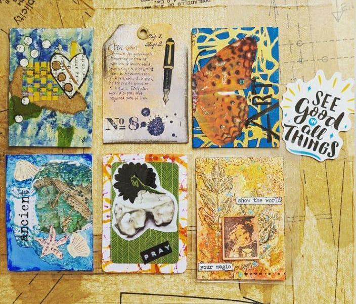 ATC stands for Artist Trading Cards and measure 2.5″ x 3.5″ in size. Back in May, I blogged about this very subject and I have been recording my journey in this endeavor over on my Instagram account.