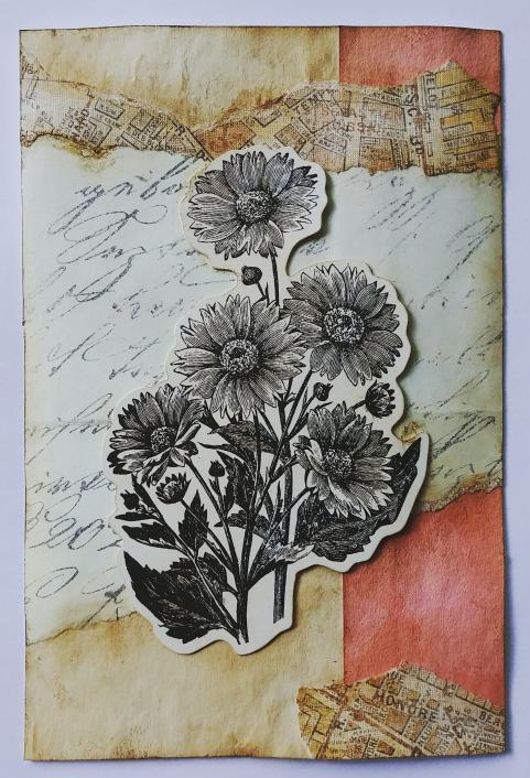 Day 21: Monday’s card represents a start of a new week. The possibilities were endless to make it a positive one and what a lovely week it has been. On this card I used scrap book pages, ink and ephemera from my older stash.