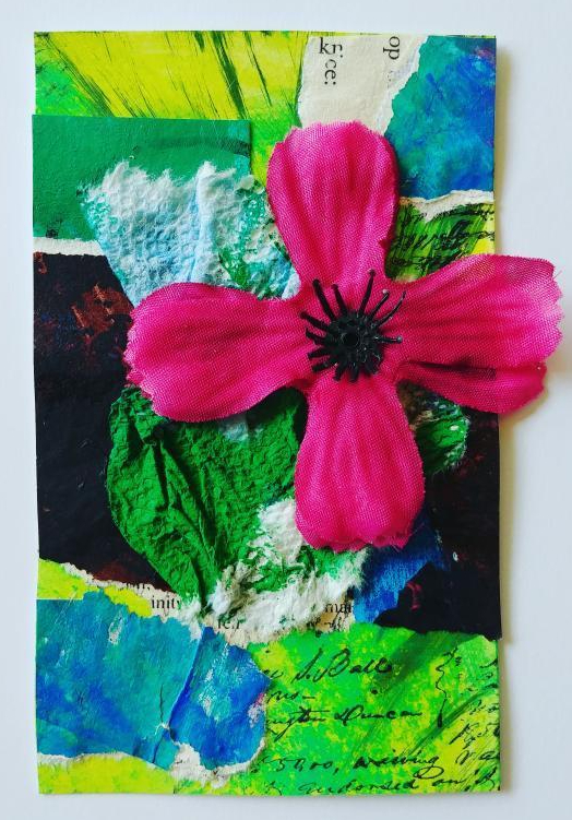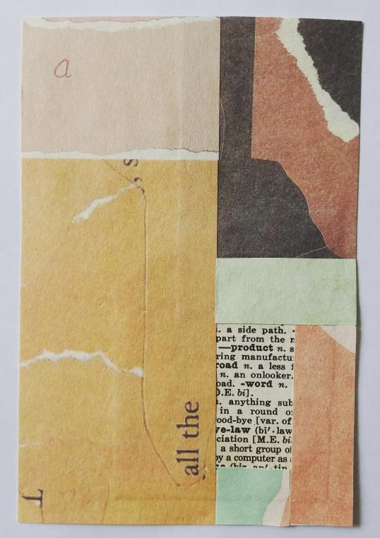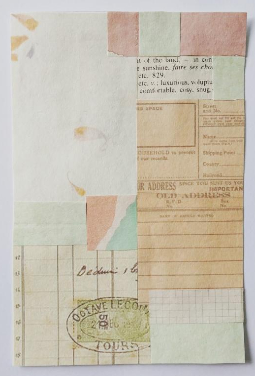 Supplies: Index Card (4″ × 6″)/paper collage/Words/Ink/Stamps