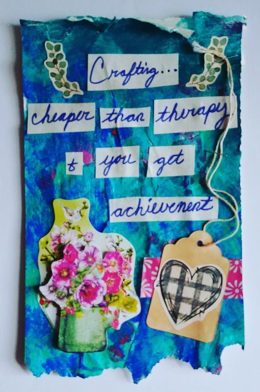 As far as the saying goes on the card, I dare say it might depend on the therapist hourly rate and the brand of crafts you buy. That said, the saying fits the bill. You get achievement in crafting.