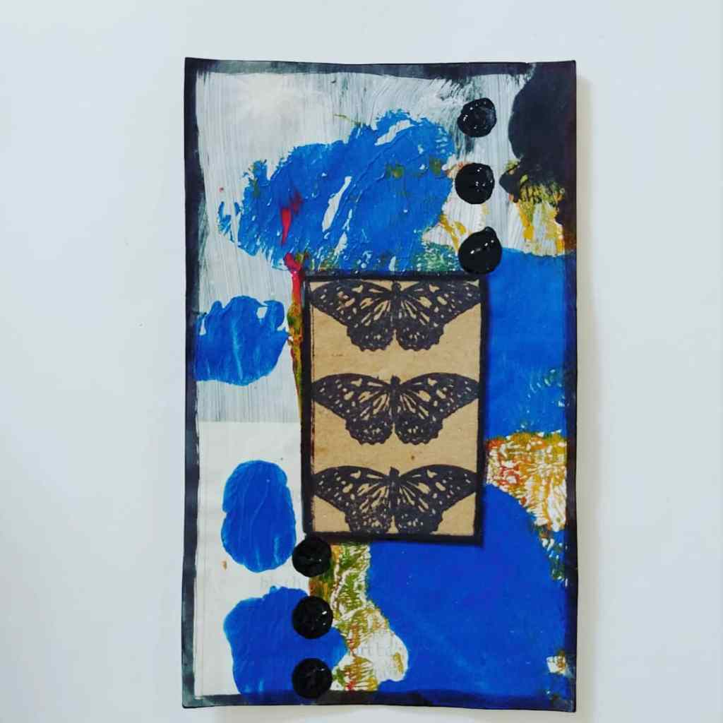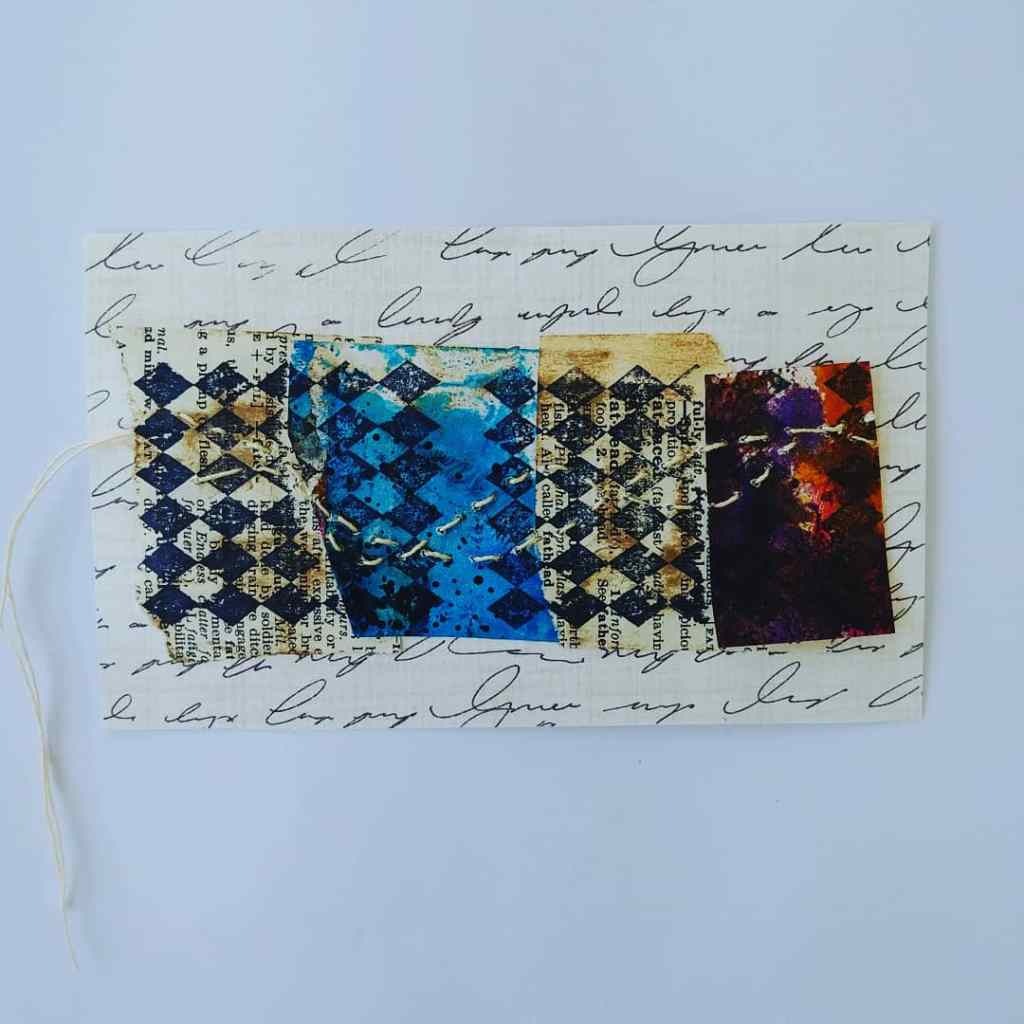 Most of the materials I am using for these cards are my painted collage papers I make on a regular basis. I’m also using magazine clippings and images from old books for collage. As well as Tim Holtz and other artists ephemera you can purchase online or at craft stores. Many of these cards will be used for my 2021 Journals. Others I want to either frame for make another art piece out of them using the collage method.