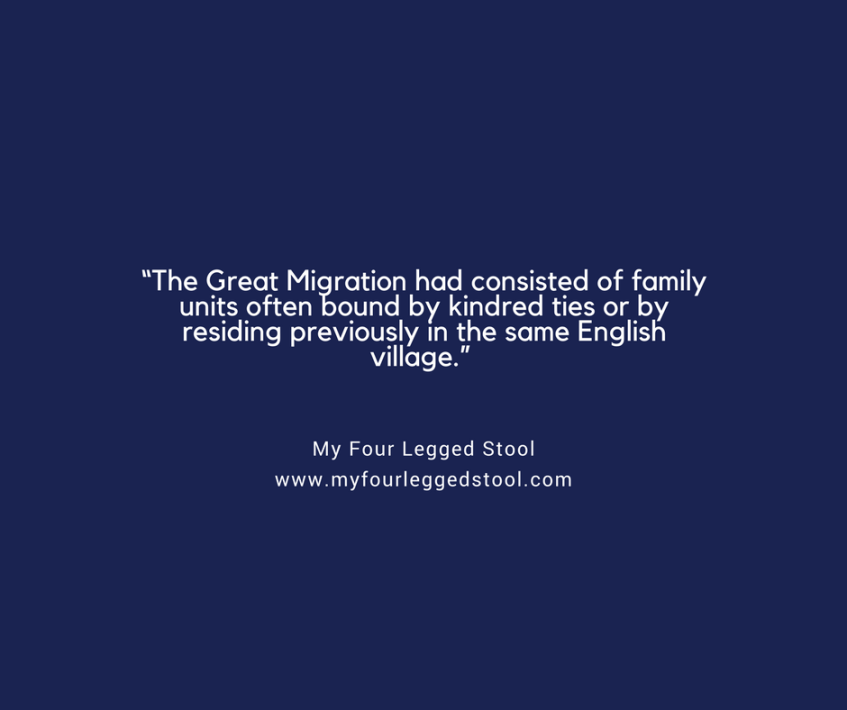 “The Great Migration had consisted of family units often bound by kindred ties or by residing previously in the same English village.”